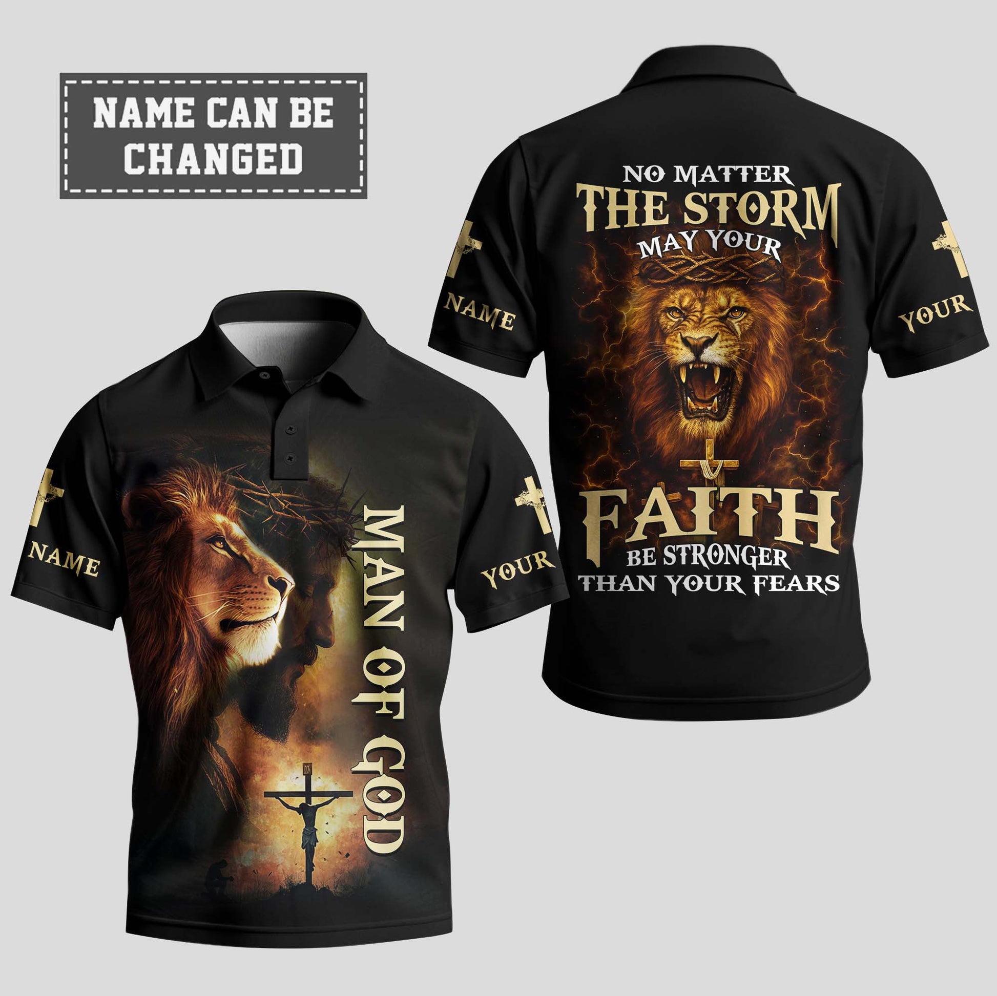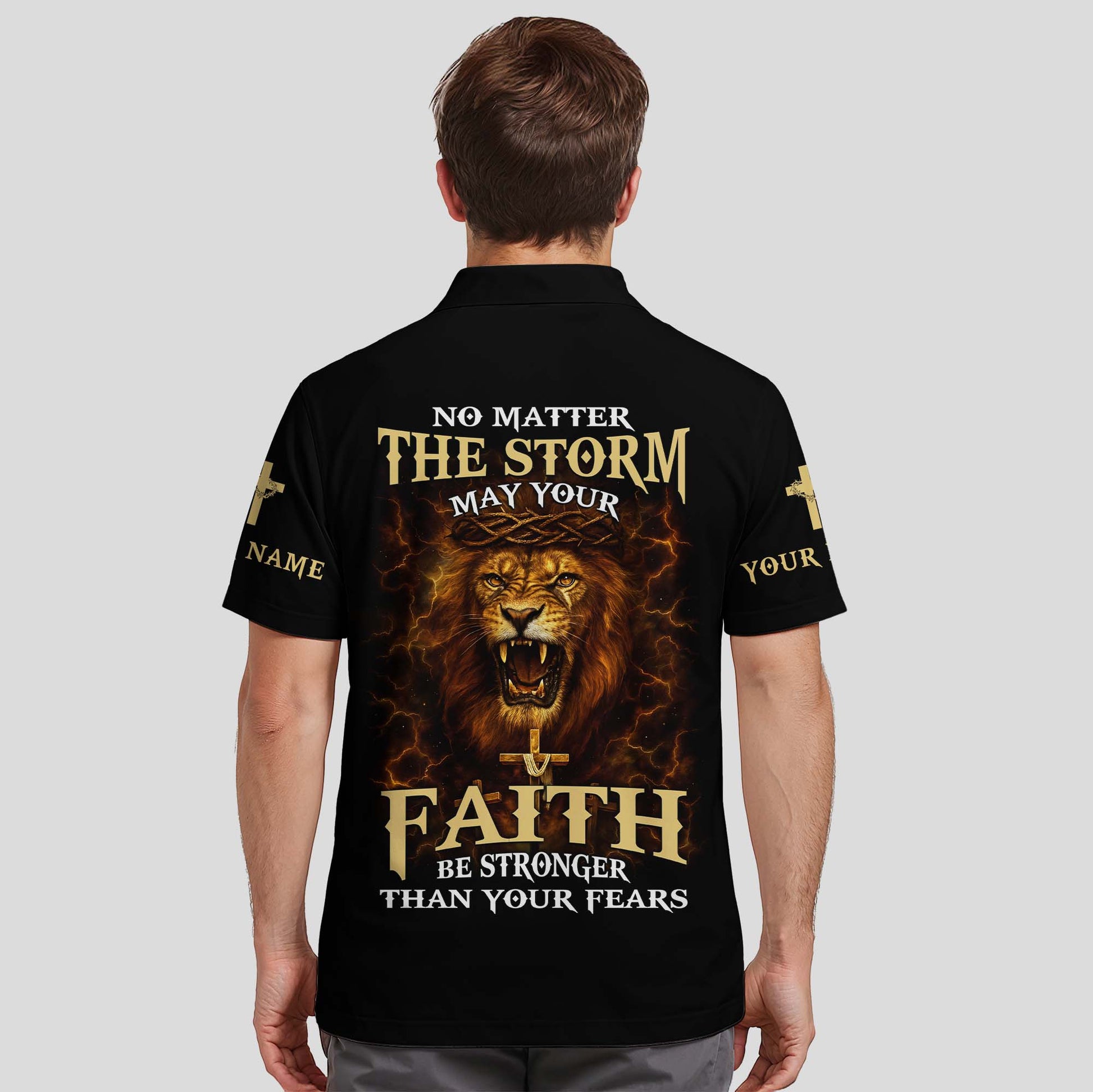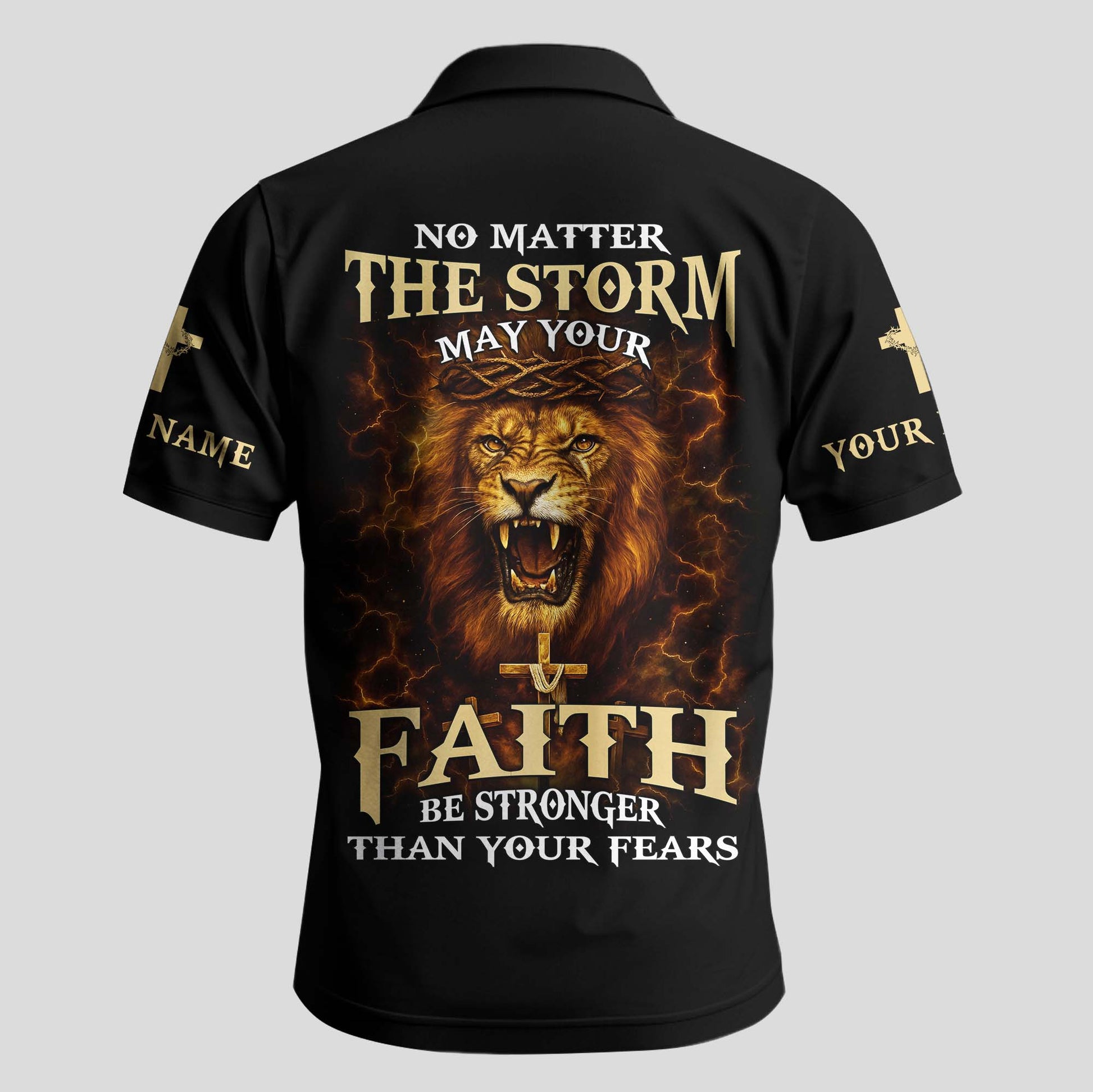 When life brings the storm, wear your faith like armor with the “No Matter The Storm” Lion Polo Shirt — designed for men who trust in God's strength over their fears.