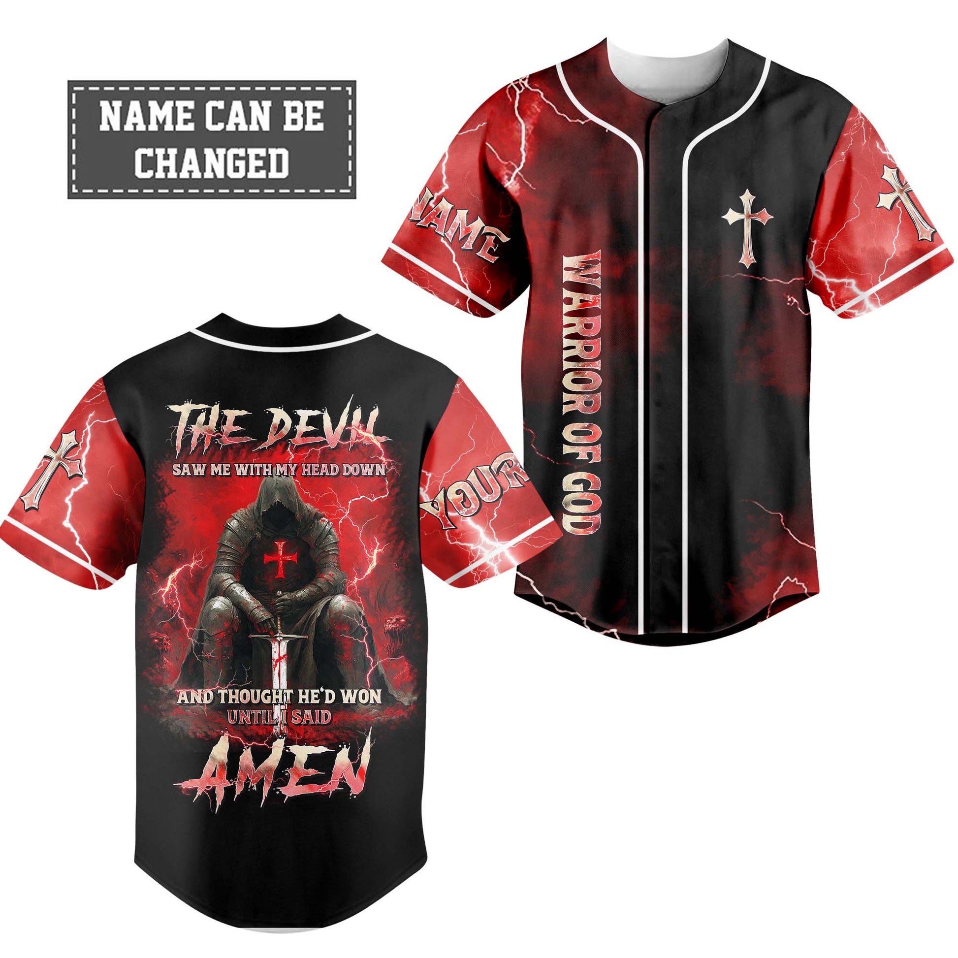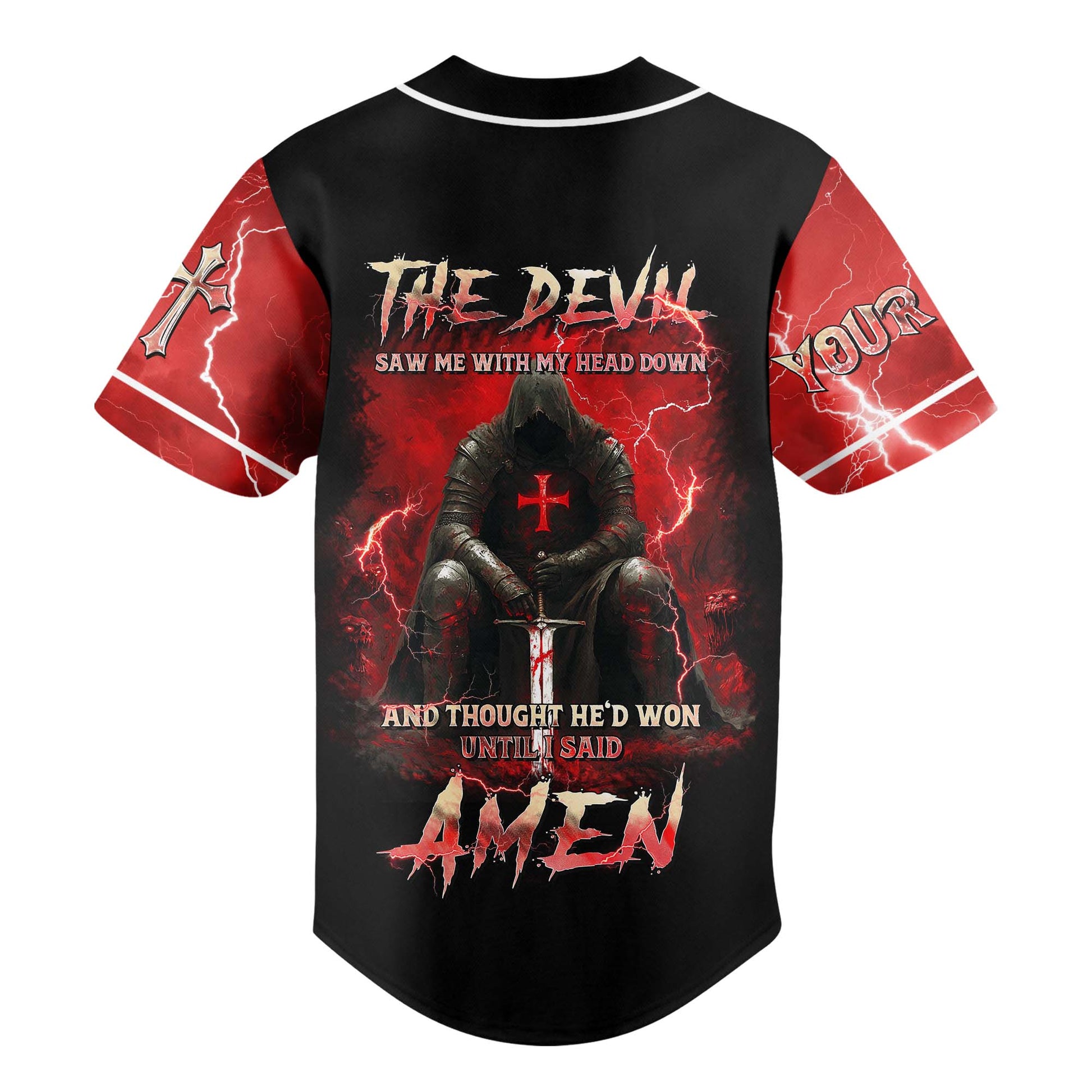 Stand your ground in faith and fire with the “The Devil Saw Me With My Head Down” Custom Baseball Jersey — made for men who don’t surrender to the storm, they pray through it.