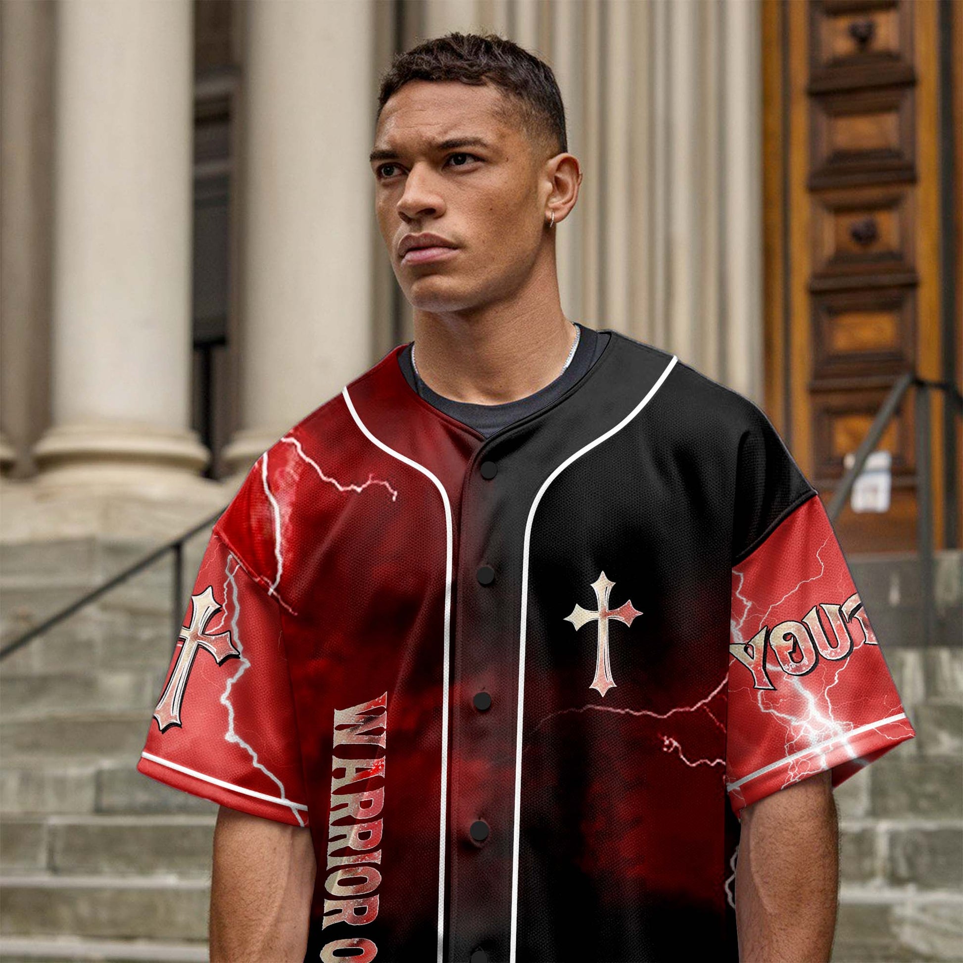 Our FaithLuxe baseball jerseys let you wear your belief proudly. With inspiring designs featuring Jesus and powerful quotes, each jersey is a visible statement of your faith and commitment to the Lord.