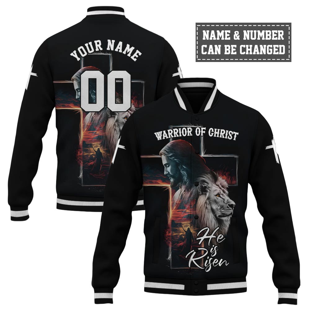 Step into bold faith and unshakable strength with the Warrior of Christ He is Risen Baseball Jacket. This powerful jacket features a stunning design of Jesus Christ and a fierce lion — symbolizing courage, resurrection, and divine authority.