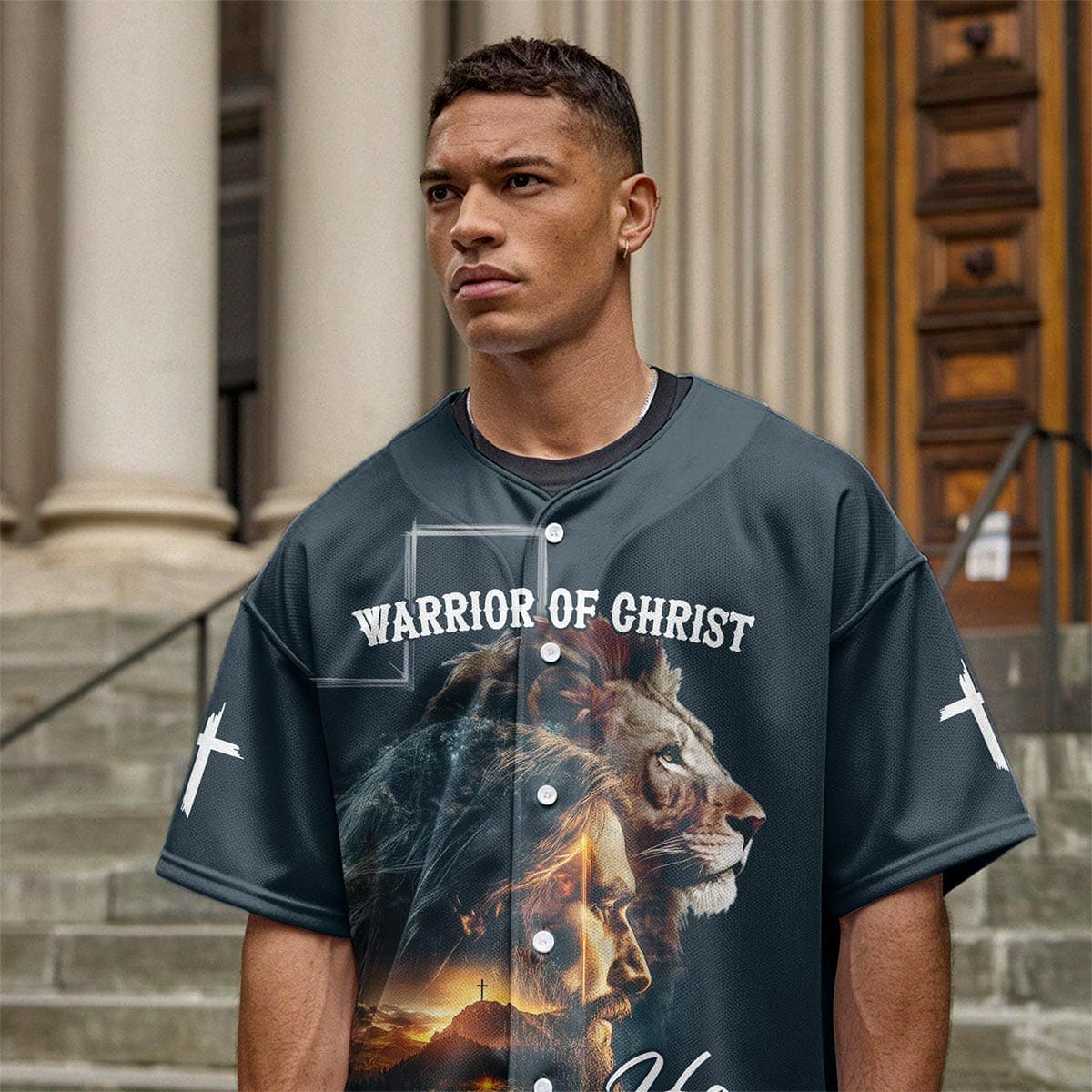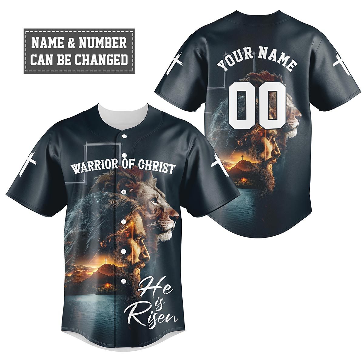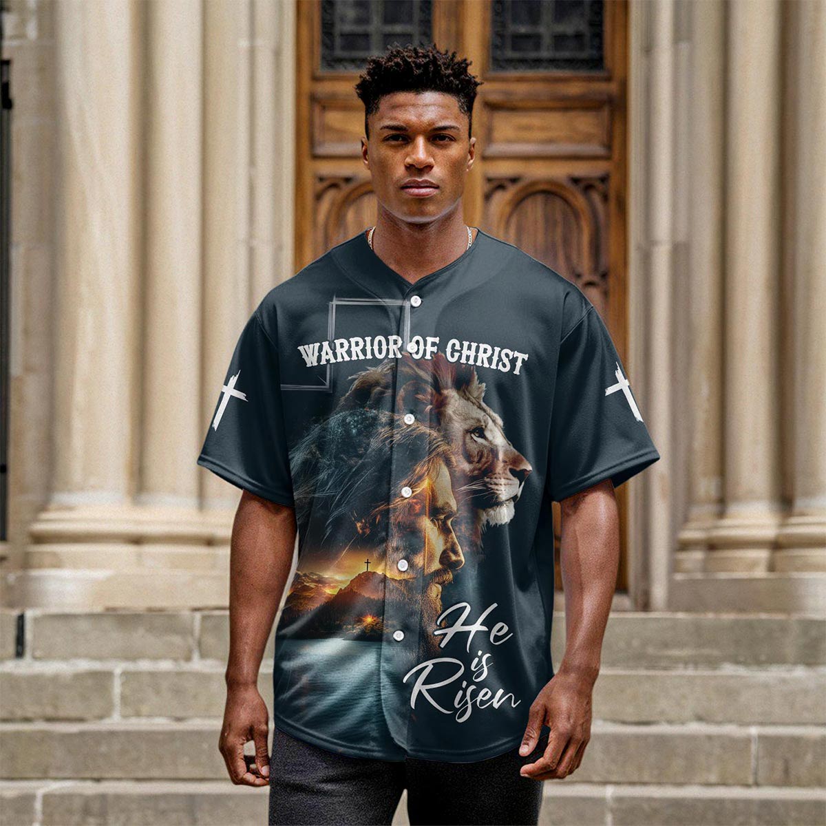 Embrace the power and victory of the risen Christ with the "Warrior of Christ He is Risen" baseball jersey. This striking design showcases the powerful imagery of Jesus, the warrior, with a lion symbolizing His strength as the Lion of Judah. The powerful message "He is Risen" beneath His image serves as a reminder of Christ's victory over death, signifying hope, triumph, and resurrection.