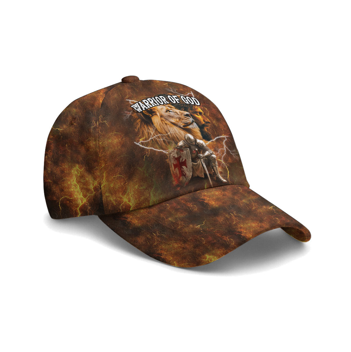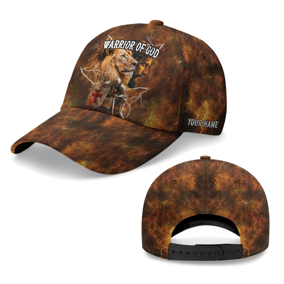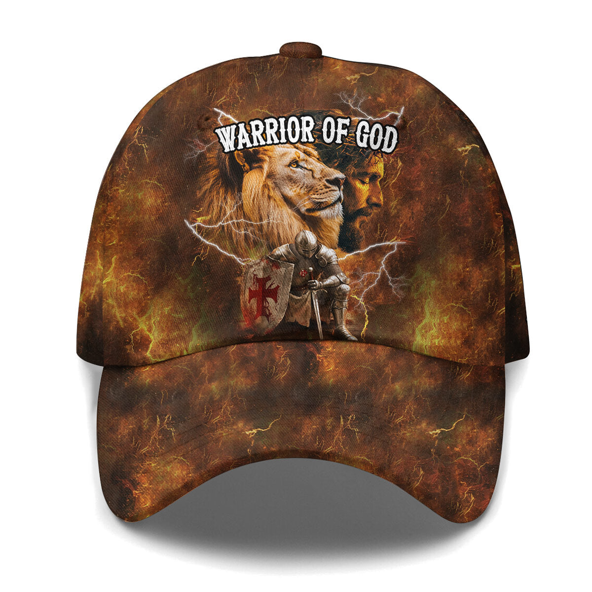 Stand bold in your faith with the Warrior of God Baseball Cap — a fierce and faith-driven design for those who fight spiritual battles daily. Featuring a striking visual of a lion, the face of Jesus wearing the crown of thorns, and a kneeling knight in armor with a cross-marked shield, this cap powerfully declares your identity in Christ. Set against a fiery lightning background, it’s a perfect mix of style and spiritual strength.
