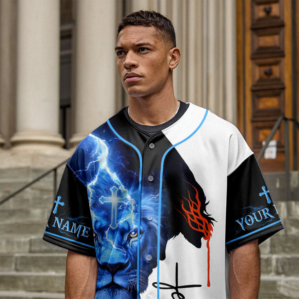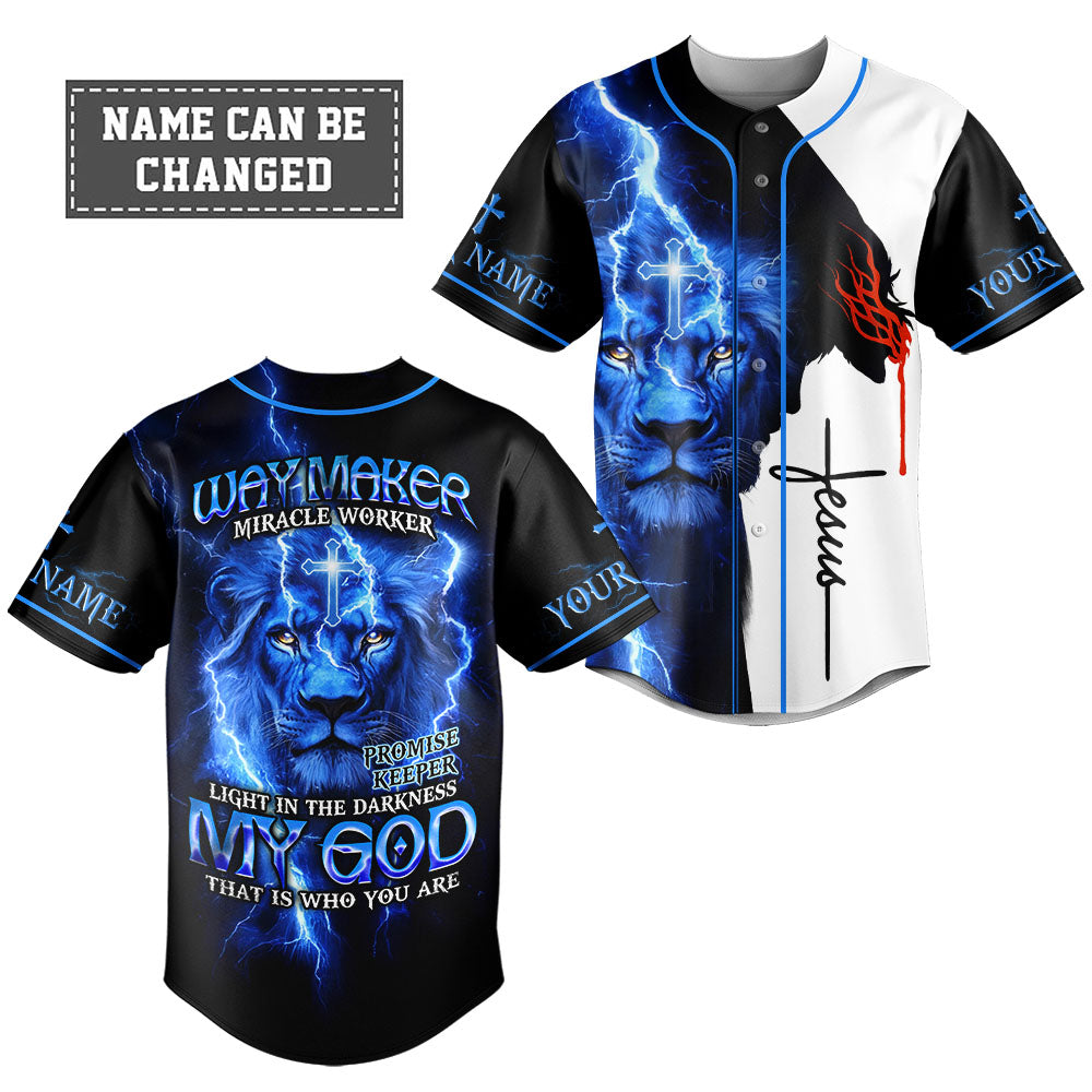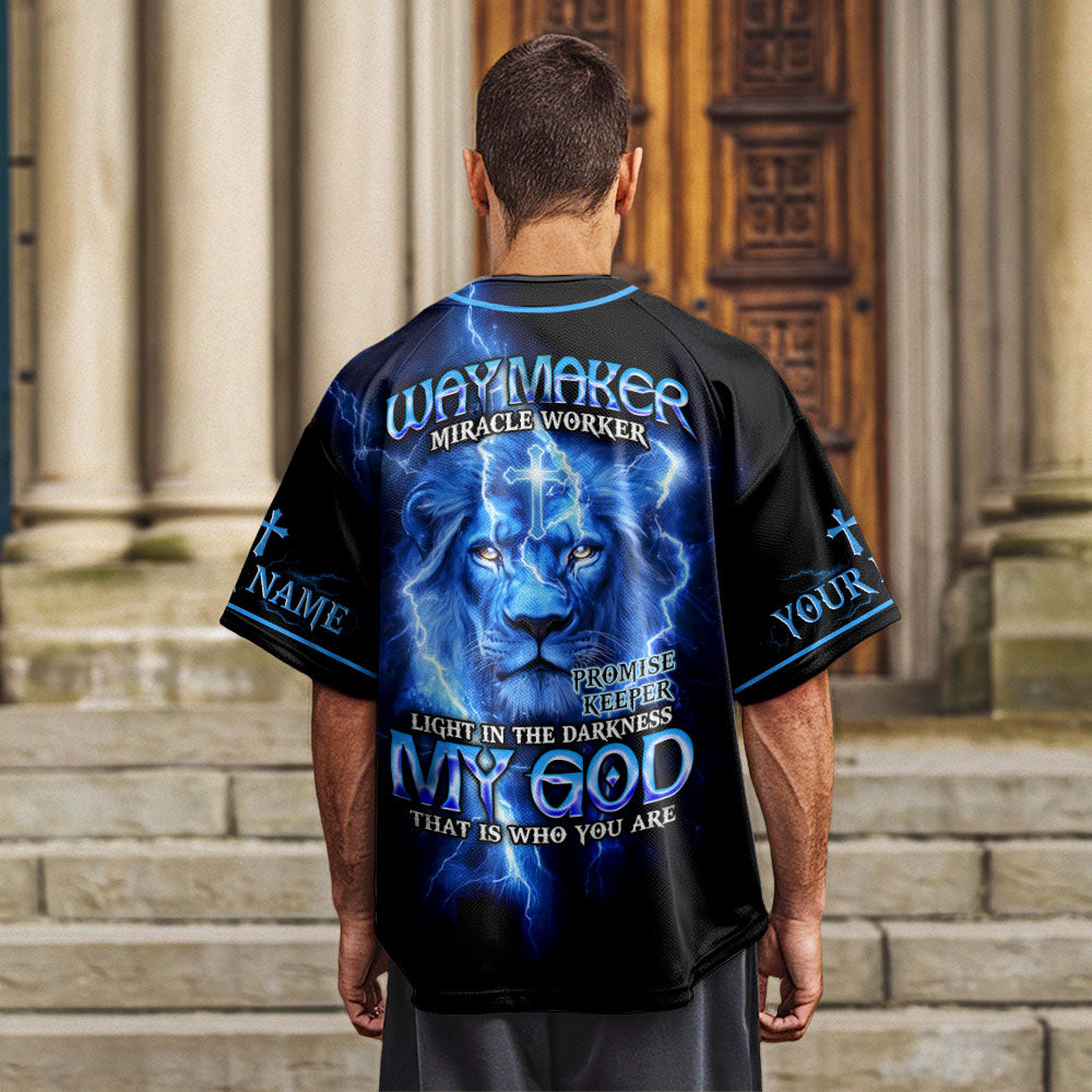 Way Maker Lion Cross Custom Name Baseball Jersey
