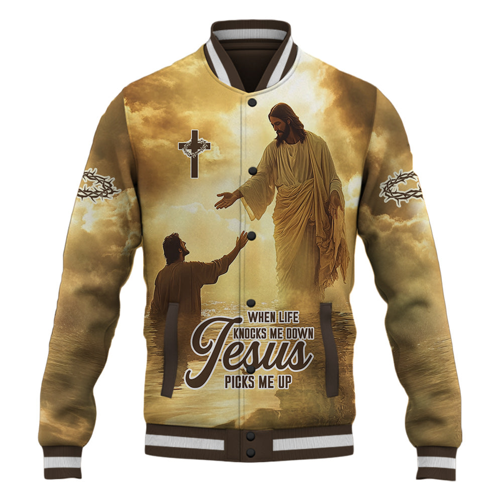 When Life Knocks Me Down Jesus Picks Me Up Baseball Jacket