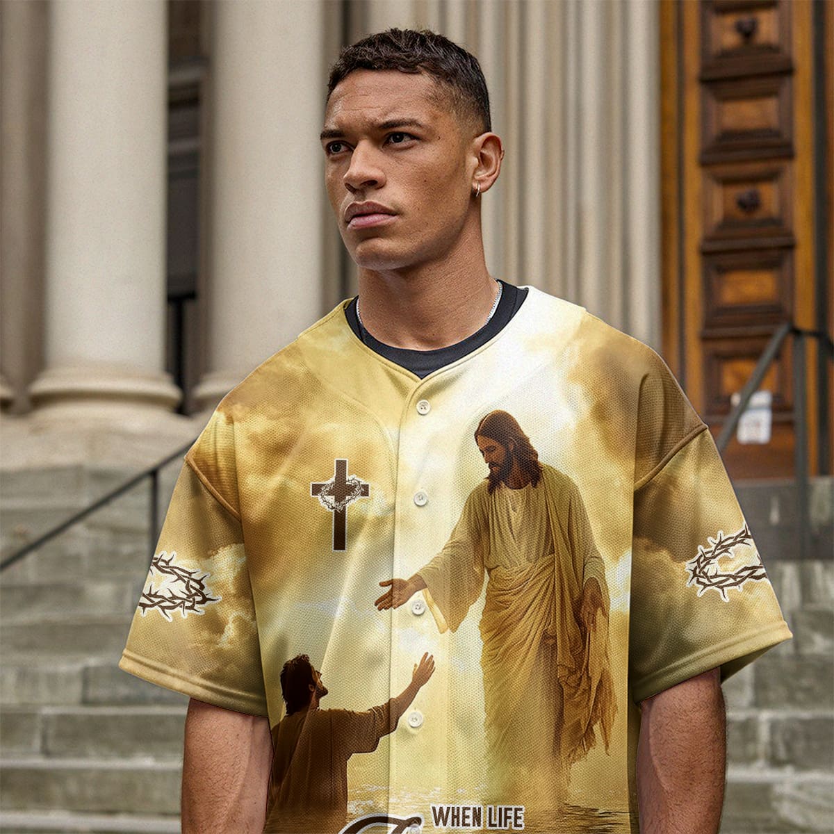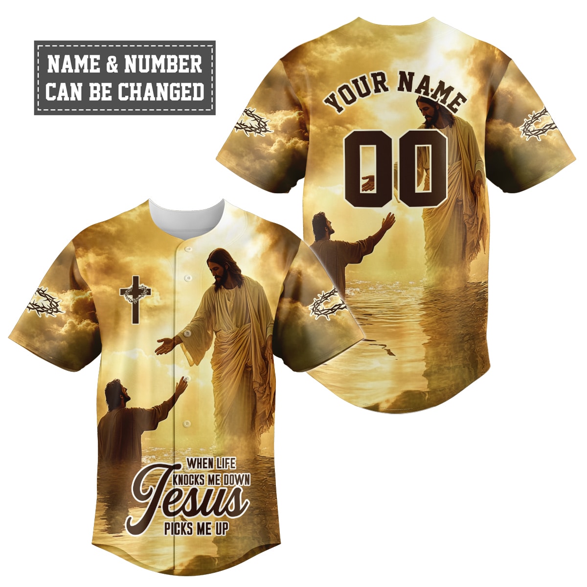When Life Knocks Me Down Jesus Picks Me Up Baseball Jersey