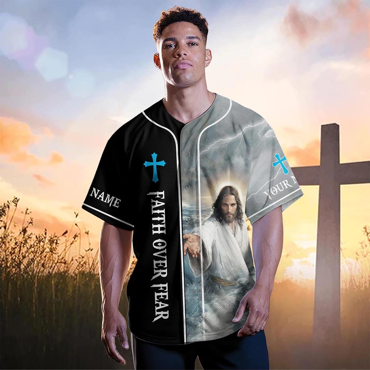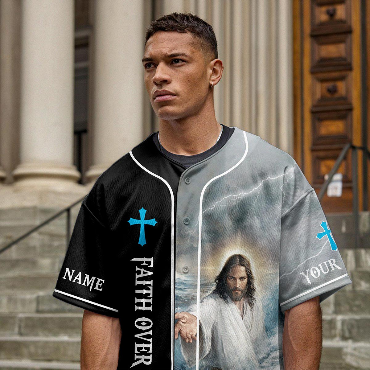 Our FaithLuxe baseball jerseys let you wear your belief proudly. With inspiring designs featuring Jesus and powerful quotes, each jersey is a visible statement of your faith and commitment to the Lord.