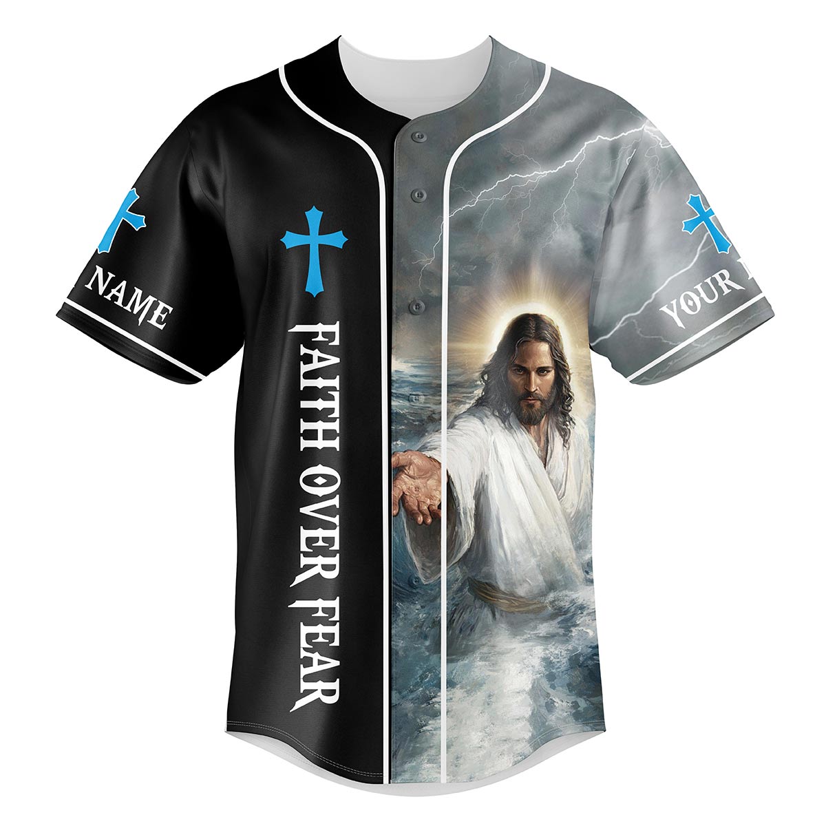 ✅ Faith Over Fear Design: Jesus walking through the storm symbolizes strength and peace