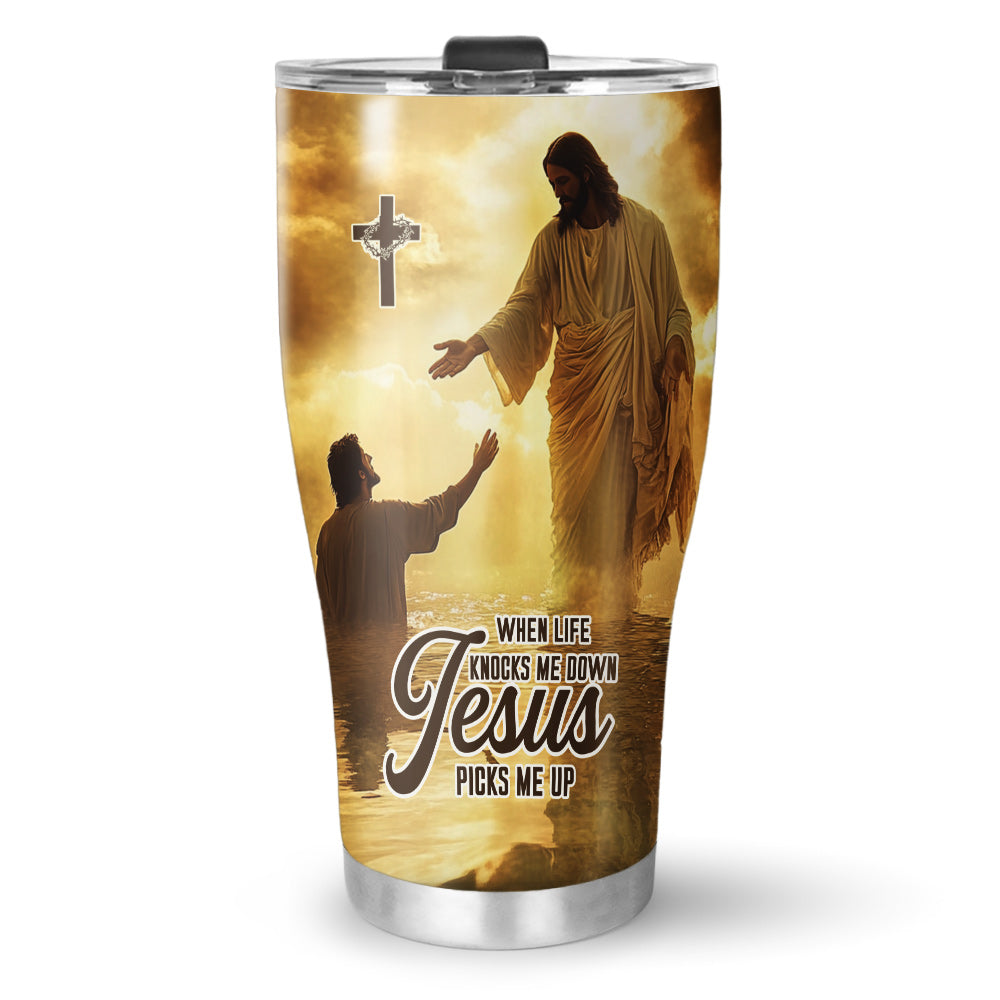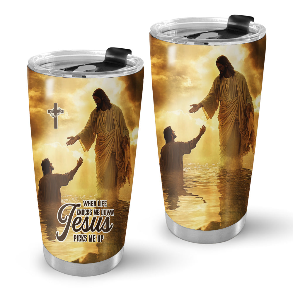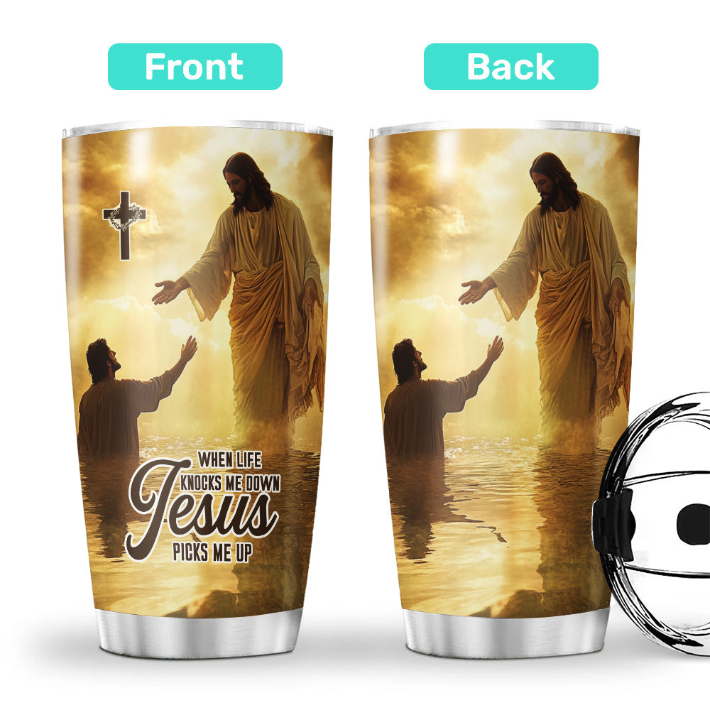 When Life Knocks Me Down Jesus Picks Me Up Stainless Steel Tumbler