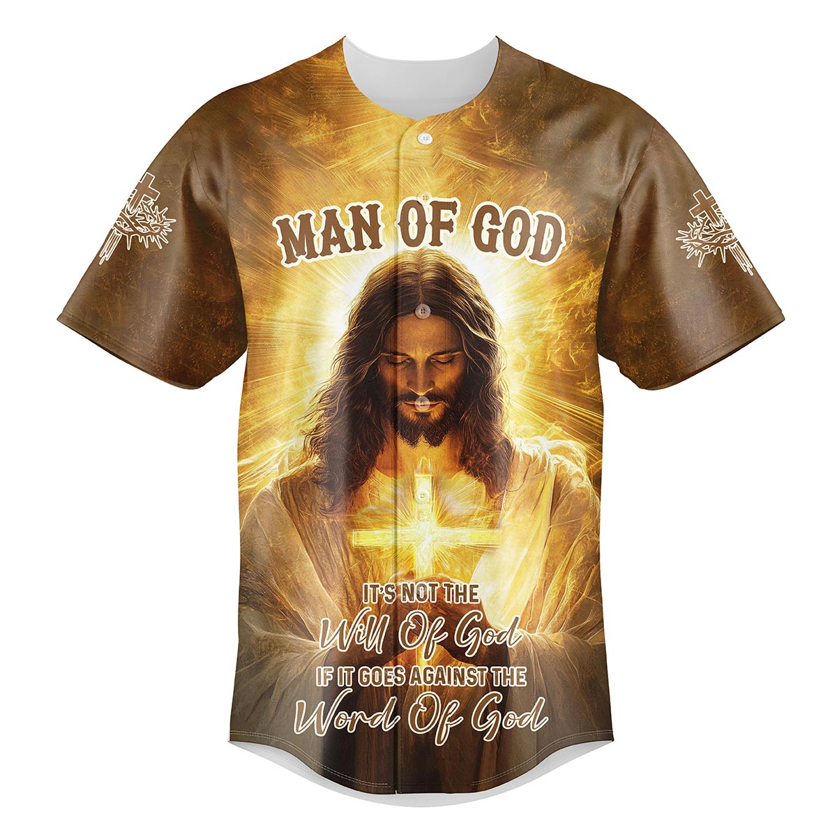 Stand firm in your faith with the "Will of God Word of God" baseball jersey. This bold design features the powerful image of Jesus, shining with divine light, symbolizing His eternal truth and authority. The message across the chest, "It’s not the Will of God if it goes against the Word of God," serves as a strong reminder to align your life with God’s Word, which is the ultimate guide to living according to His will.