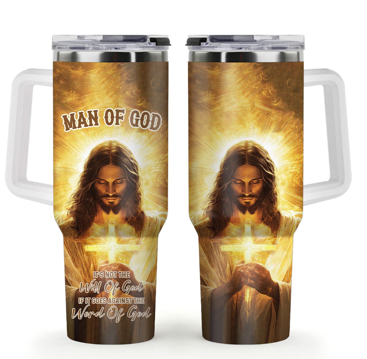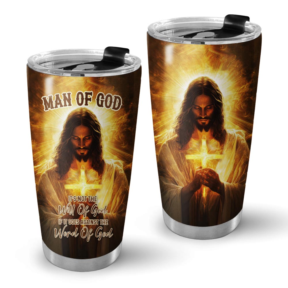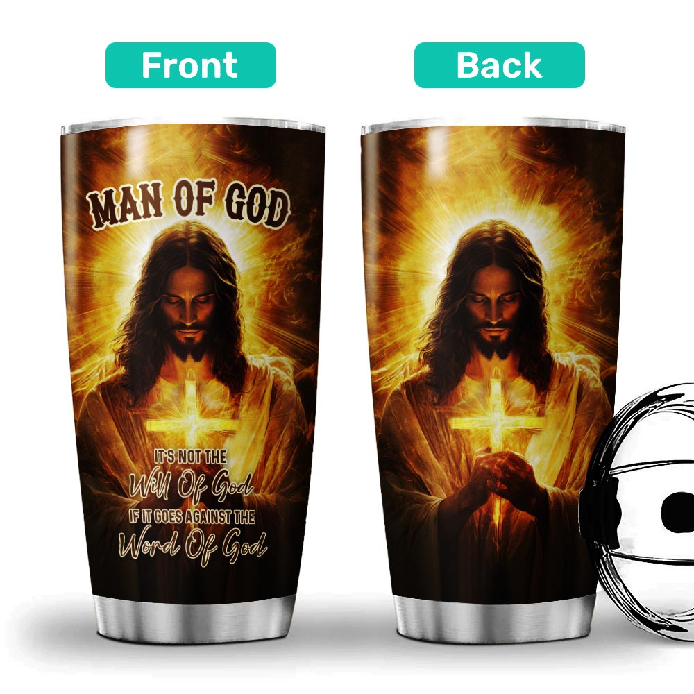 Elevate your daily routine with the Will of God Word of God Stainless Steel Tumbler, a powerful symbol of faith, wisdom, and devotion. Featuring an awe-inspiring image of Jesus holding a glowing cross, this tumbler carries the message: "It’s not the will of God if it goes against the Word of God." A reminder to stay true to His path in all aspects of life.